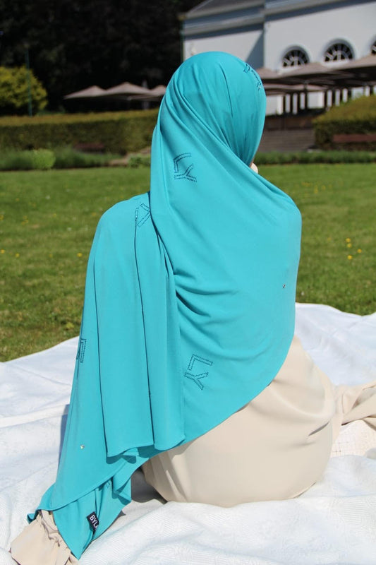 Hijab Jersey Premium strass Turquoise & Diamond